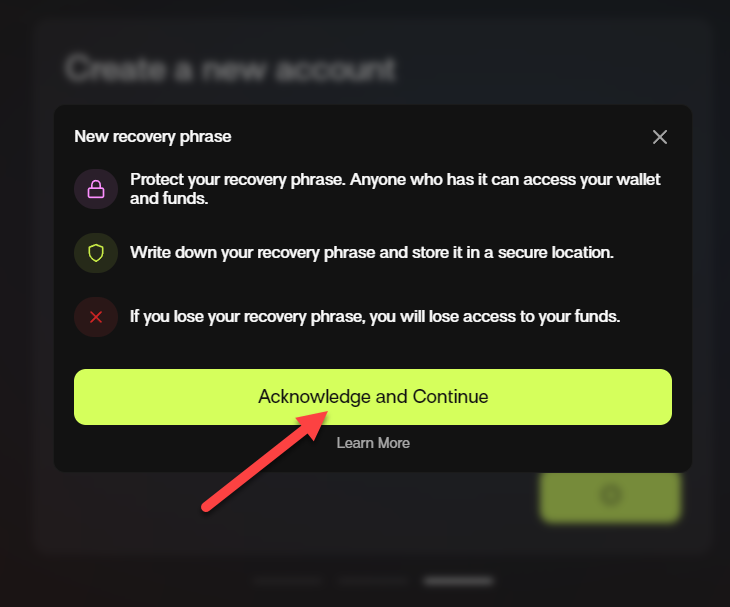 **Step 7:** Select either **'12-word'** or **'24-word'**, ***save the recovery phrase words shown somewhere safe***, check the checkbox, and click on **'Verify recovery phrase'**.