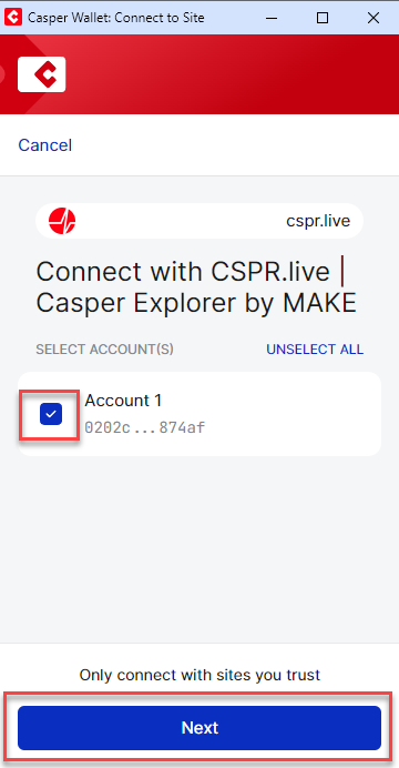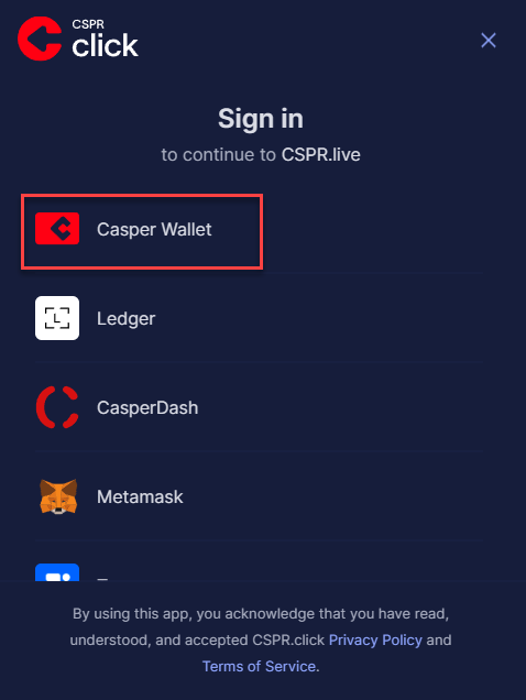 **Stap 2:** Klik op '**Casper Wallet**'.