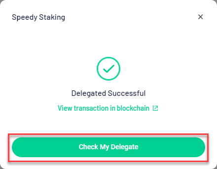 Stap 8: Je hebt nu succesvol je $KCS gestaked. Klik op 'Check My Delegate'.